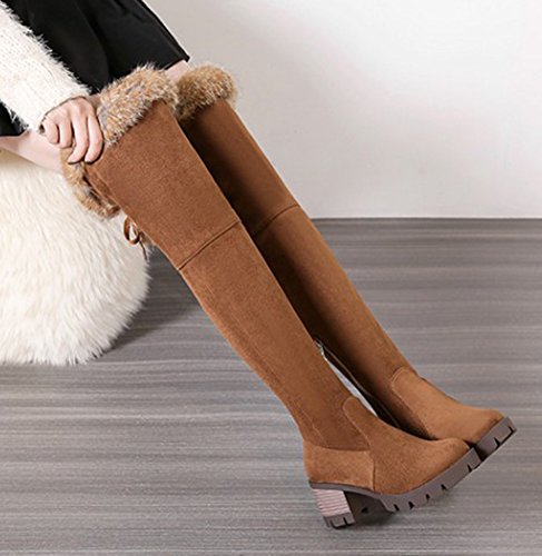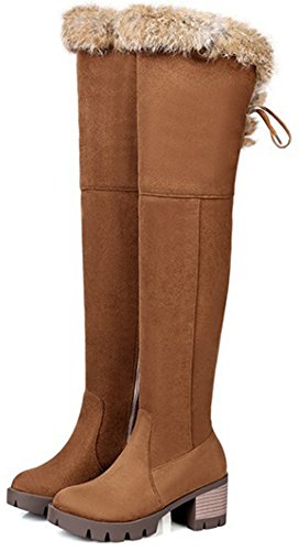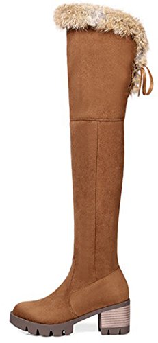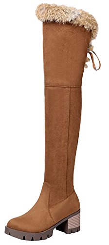Binding : Apparel Product Description Cold weather is on the way. Do you need a pair of fashionable boots both of warm and trendy element? You could pock this one. This pair of shoes is for women, girls, juniors and young ladies. You will look elegant and casual when wearing them. The heels measure 2.6 inches. You will feel comfy in their block heels. This pair of shoes features solid upper and above-the-knee. You will look cute in their round toe design. The decoration of fluffy fur will make unique. The sole is made of good rubber. You will feel comfortable in their soft bottom. They are of high quality and durable. Come on and take them away! 0