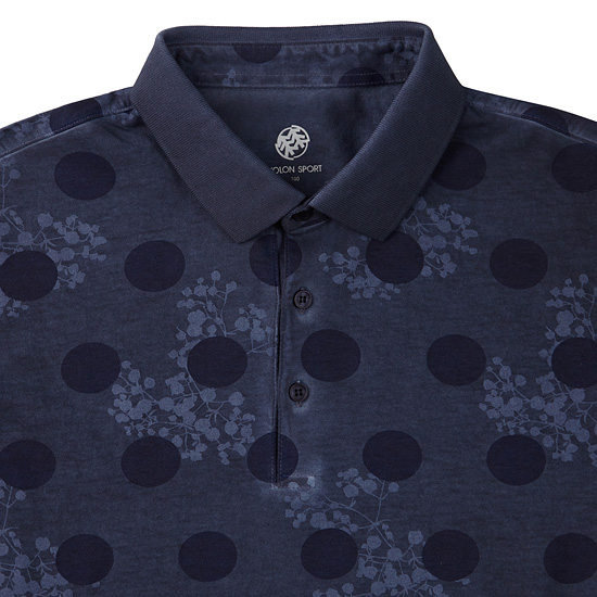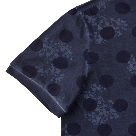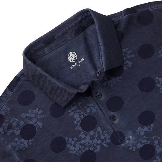 - 가먼트 다잉 기법으로 특별한 컬러감을 적용한 남성 반팔 폴로티셔츠.