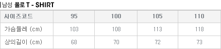 | 사이즈 조견표: