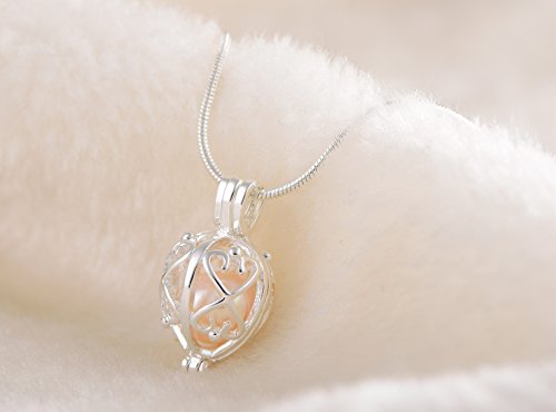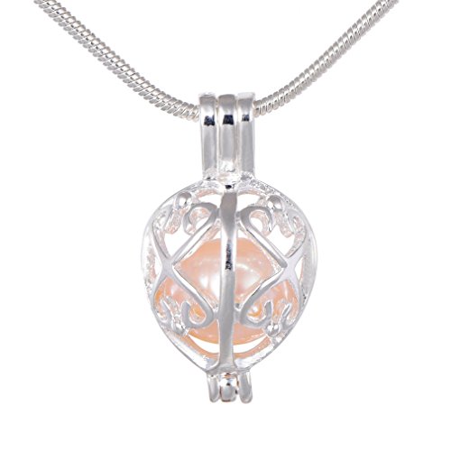 Locket Pearl Cage 925 Silver Tone Necklace Pendant Freshwater Cultured Pearl Beads in Oyster Gift Charms Chain 17.7"