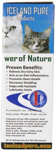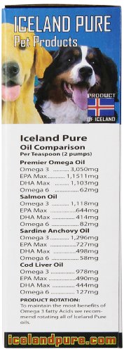 Iceland Pure Unscented Pharmaceutical Grade Sardine Anchovy oil from the clean waters of Iceland. Omega 3 fatty acids per tst 1,296mg.Our oil is practically odor free with great palatability and freshness (preferred oil for cats). Our Sardine Anchovy oil undergoes a molecular distillation process that takes only 45 seconds at 250 degrees C under high vacuum. This shortening of the "sit" or "residence" time for processing greatly improves the quality because it guarantees that no trans fats are created. This natural purification process also removes virtually all toxins and heavy metals to produce a level of purity so high that the oil can be labeled "toxin-free." Samples of our oil are tested regularly for purity by licensed, third-party testing companies, in accordance with strict European safety standards, as stringent or more so than US standards. In addition our Sardine Anchovy oil is housed in our exclusive brushed epoxy coated aluminum bottles, the finest quality packaging to help ensure you receive the freshest and safest fish oil available for your pets. These bottles are FDA-approved to hold liquids used for human consumption.Feature