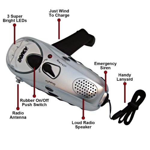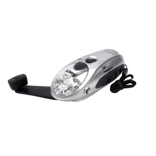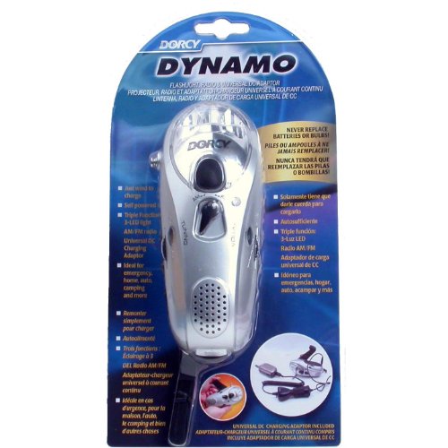 Product Description LED, Dynamo Crank Flashlight, AM/FM Radio, Siren Universal DC Adaptor, No Batteries, No Bulbs, Fold Out Hand Crank Provides All Needed Power, Just Wind To Charge, 1 Minute Of Windup Equals 20 Minutes Of Light, Self Powered, 3 LED Lights, Ideal For Emergency, Home, Auto, Camping Much More, Carded.