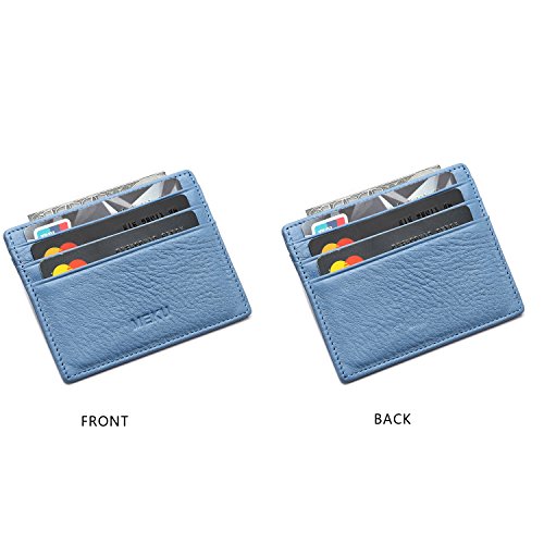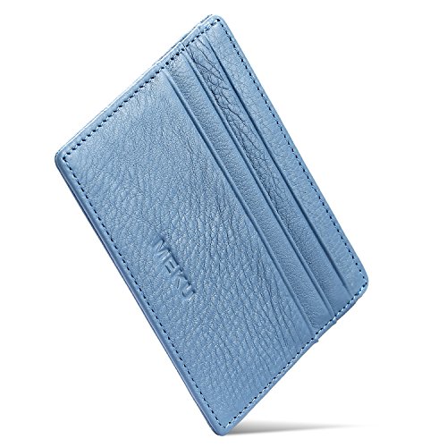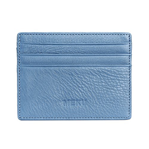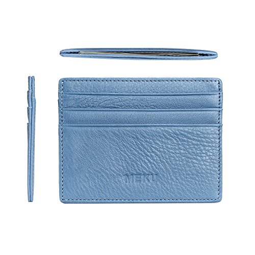 MEKU Slim Front Pocket Leather Wallet Business Credit Card Case Sleeve Minimalist Wallet Blue
