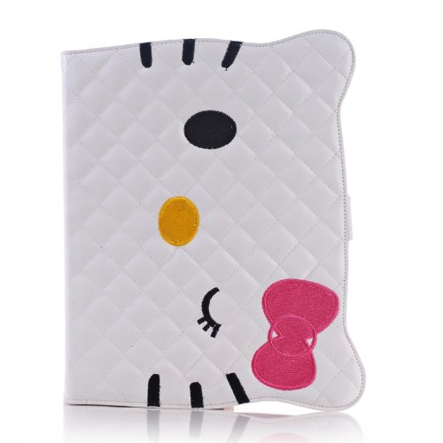 B.N.G New Arrival Pu Leather Sweet Bowknot Cat Soft Flip Case for Apple Ipad 2 Ipad 3 Ipad 4 With Stand +1 Small Gift (white)