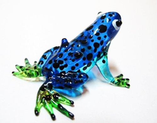 Lampwork COLLECTIBLE MINIATURE HAND BLOWN Art GLASS Blue Frog, Black dot FIGURINE by ChangThai Design