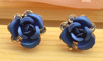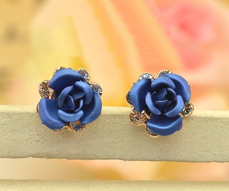 anting mawar merah biru Kristal zirkon bunga Perhiasan pesta pernikahan red roses stud earrings crystal blue flower zircon gold plated women Jewelry wedding JEW SJA0846535262 GHJ qty000