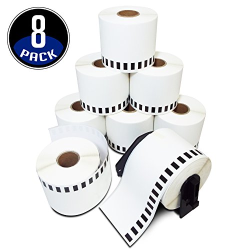 [8 Rolls / Case + 1 Refillable Cartridge Frame] Brother DK-2205 Compatible Label Continuous Paper Roll, 2.4 ( 2-3/7 ) Inches X 100 Feet for Brother P-Touch Q Touch Series Printers