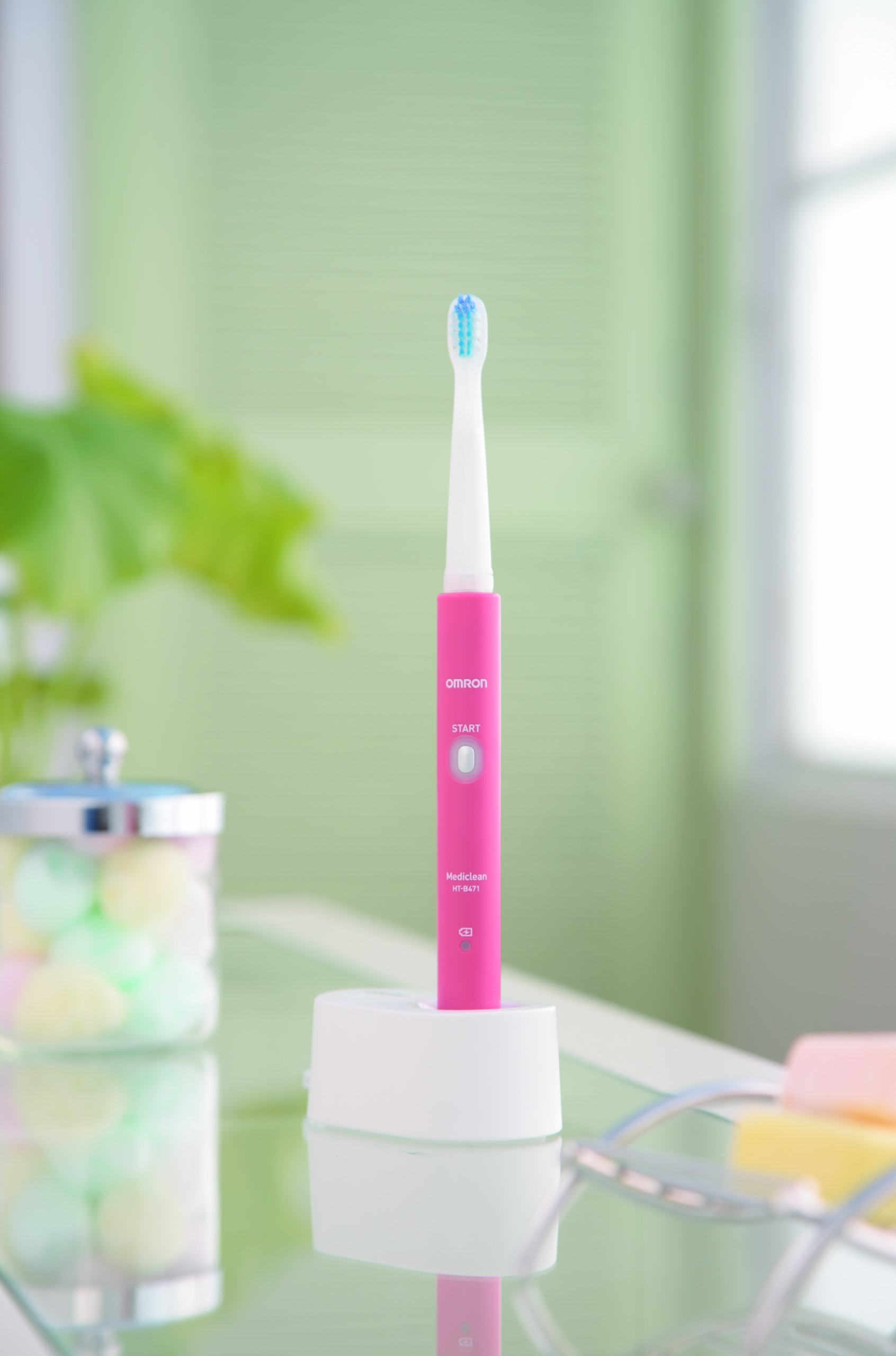 "Omron Sonic Type Electric Toothbrush Medi Clean HT-B 471" is a design with a clean feeling like glass that fits any toilet.