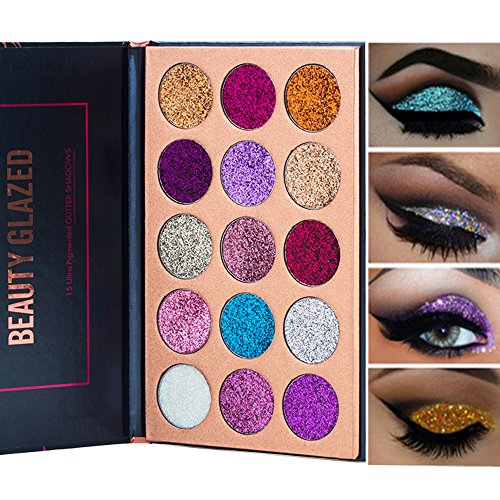 15 GLITTER COLORS PALETTE: Each color is unique, beautiful, super shiny and pigmented. It's easy to use and looks great on your eyes.