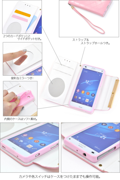 Xperia Z3 Compact SO-02G用のゴージャスエナメルケースポーチ。