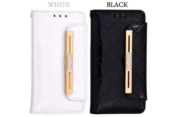 エナメルの光沢とラインストーンがエレガント感を演出してくれるケースです。
