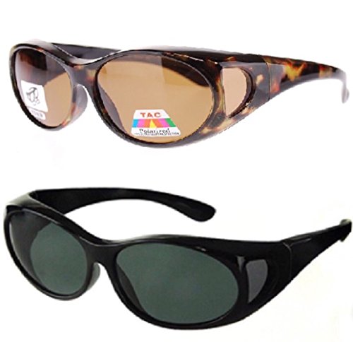 Discover the Better Way to Protect Your Eyes With Fit Over Sunglasses. Eye health experts recommend protecting your eyes with sunglasses every time you head outdoors, but that's not so easy to do when you have to wear prescription eyeglasses. With your dilemma you are faced with a difficult decision. You could spend a small fortune on sunglasses with prescription lenses or save money but compromise your eyesight by wearing ordinary, nonprescription shades. Now there's a better solution! Over the Glasses Sunglasses are the answer! With Over Glasses Sunglasses, you can reduce UV exposure from the front, top, and sides of your eyes while wearing your everyday eyeglasses. The wear over sunglasses shell is designed to fit over all types of prescription eyewear to provide an effective shield against the sun. Why should you use polarized lenses? Polarized lenses cut down on glare to make it easier for you to see on bright days. These fit over polarized sunglasses are made from heavy-duty, wear and tear resistant plastic, so they can outlast other wear over sunglasses! Fitover sunglasses can be worn by men and women. Wear over sunglasses are trendy fashion pieces, they are also designed to provide an unparalleled level of protection and optimal comfort.Feature