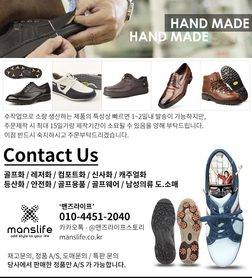 국내생산 잔디로 천연 소가죽 수제 골프화 남성골프화