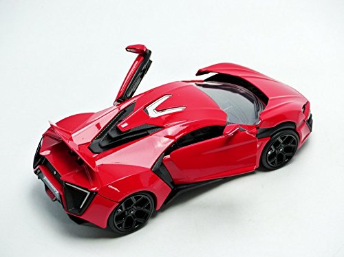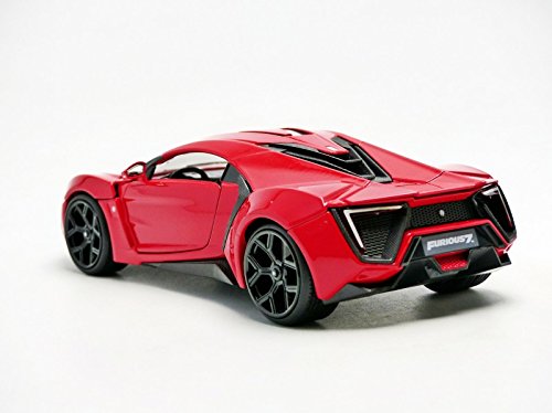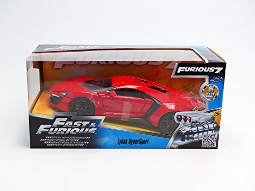 -. Binding : Toy -. Brand : Jada -. Color : Red -. EAN : 0801310973776 -. Feature : Opening hood, doors, and trunk / Detailed interior / Exterior styling directly from the movie -. IsAdultProduct : 0 -. Label : Jada Toys - US -. Manufacturer : Jada Toys - US -. Model : 97377 -. MPN : 97377 -. PackageQuantity : 1 -. PartNumber : 97377 -. ProductGroup : Toy -. ProductTypeName : TOYS_AND_GAMES -. Publisher : Jada Toys - US -. Studio : Jada Toys - US -. Title : Jada Toys Fast & Furious Lykan Hypersport 1:24 Diecast Vehicle, Red -. UPC : 801310973776 -. Warranty : 30 Day Limited Manufacturer Warranty