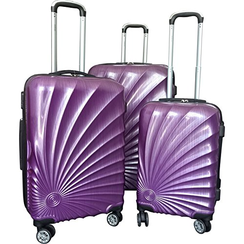 Product Description Buy this all new solid geometric spiral design suitcase that's durable and could carry loads for your travel. A great item to have. Set Includes: 3 Suitcases, 20 inches high x 9 inches wide x 13 inches long (7 pounds), 24 inches high x 11 inches wide x 16 inches long (9 pounds), 28 inches high x 12.5 inches wide x 18.5 inches long (11 pounds). Features: Locking, Multi-Compartment, Rolling, Spinner, Fashion, Hardsided and Durable | Materials: Plastic, Polycarbonate 0