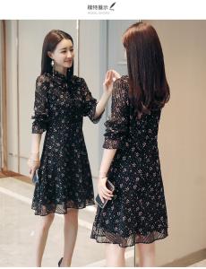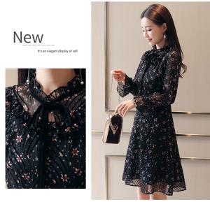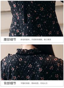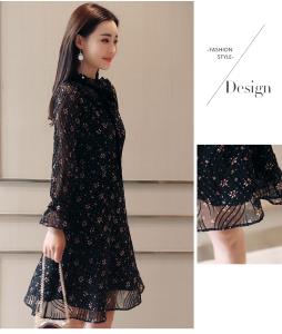 ハイネック ヴィンテージライク 長袖 フレア袖 小花柄 膝丈 膝上 ゆったり フレアスカート フリル プチプラ