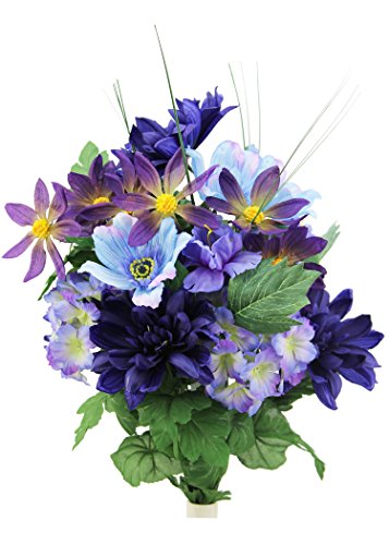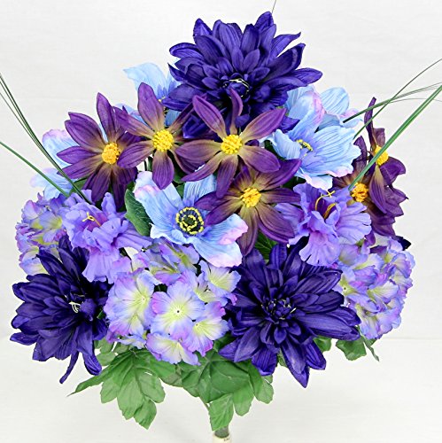 Admired By Nature Artificial Full Blooming Dahlia, Azalia & Hydrangea with Greenery Mixed Bush for Home, Wedding, Restaurant & Office Decoration Arrangement, Blue, 18 Stems