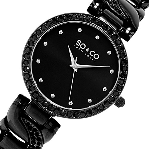 -. Title : SO&CO New York Women's 5062.4 SoHo Quartz Crystal Accent Black Chain Link Bracelet Watch