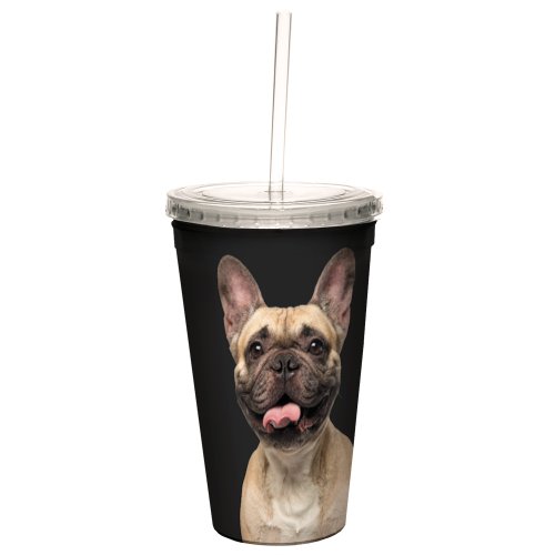 Tree-Free Greetings CC35053 I Heart French Bulldogs Artful Traveler Double-Walled Cool Cup with Reusable Straw, 16-Ounce