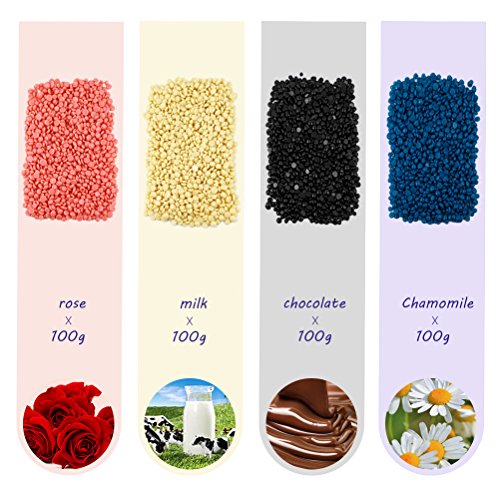 ★FOUR DIFFERENT FLAVOURS WAX BEANS:Natural wax Ingredients Rose, Milk, Chocolate,Chamomile.