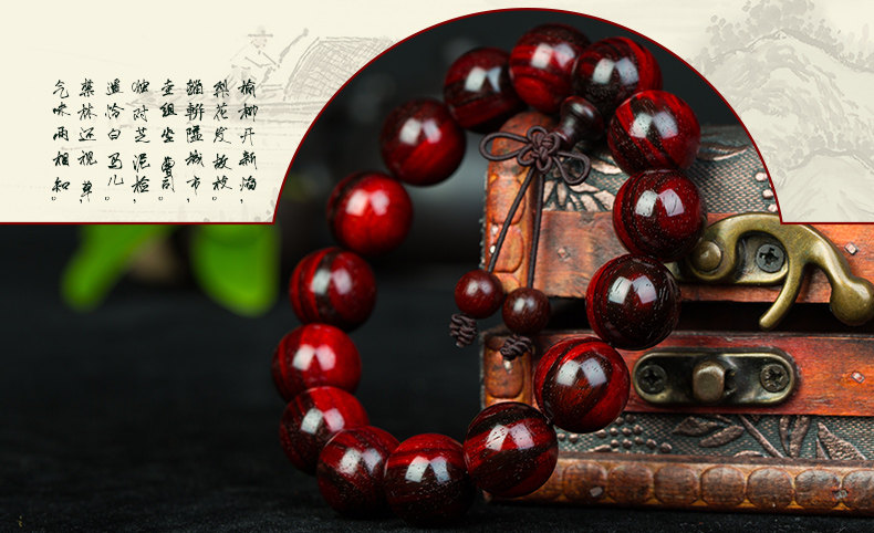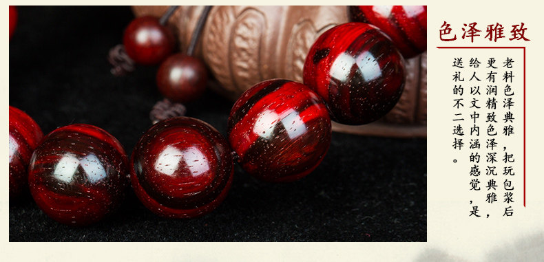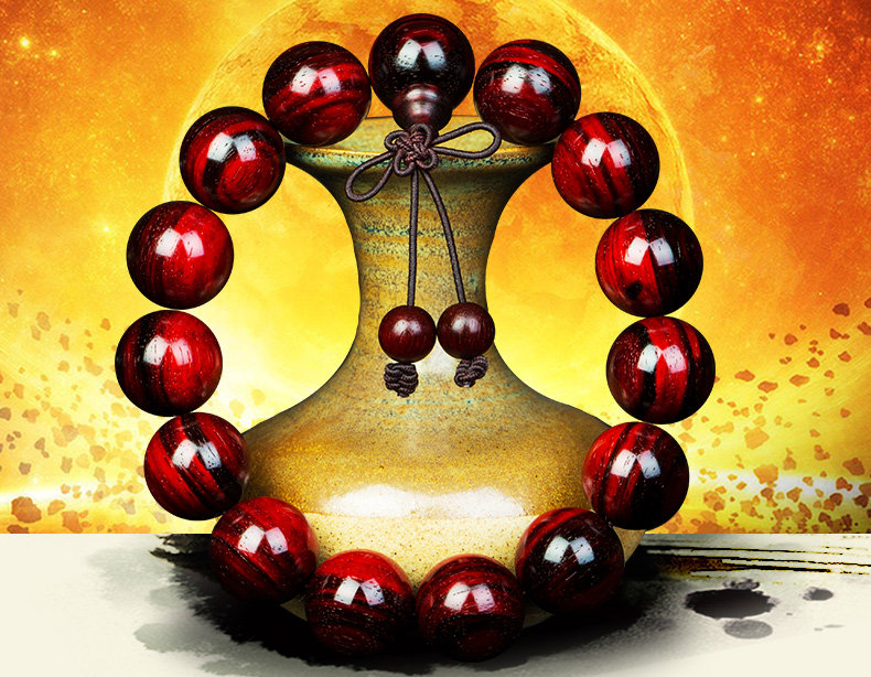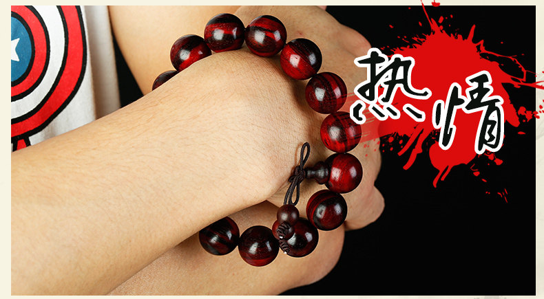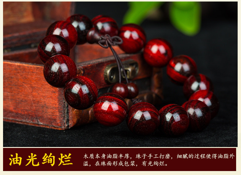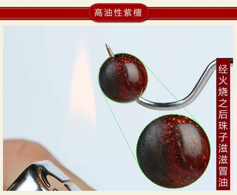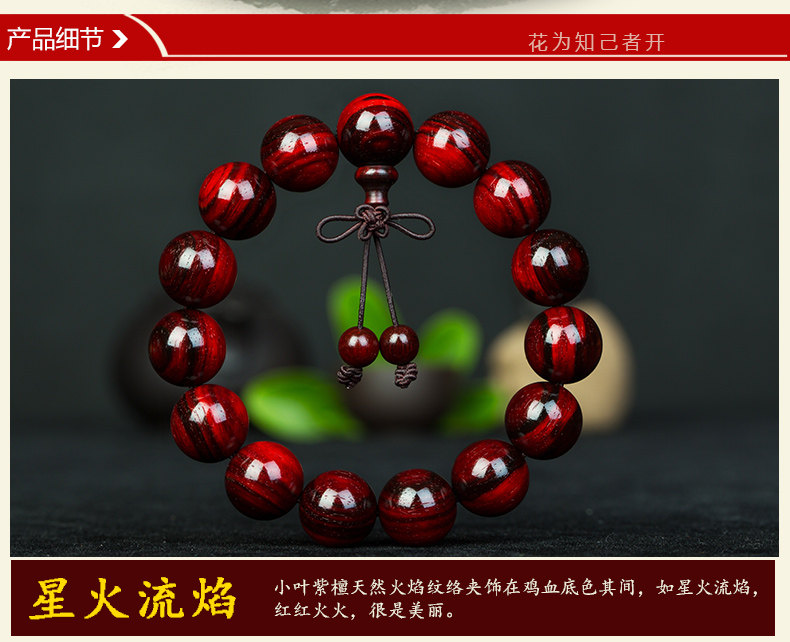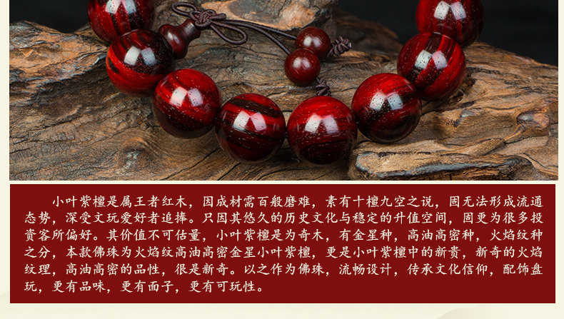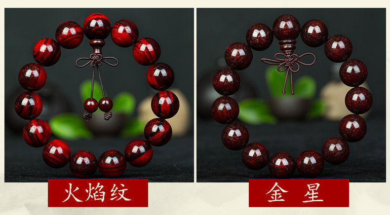 正宗老料小叶紫檀手串男佛珠紫檀男士木珠手链满金星火焰纹