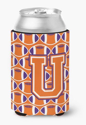 Caroline's Treasures CJ1072-UCC Letter U Football Orange, White and Regalia Can or Bottle Hugger, Multicolor