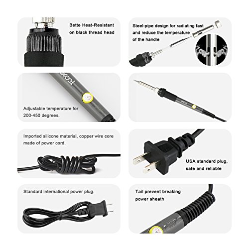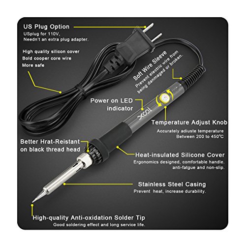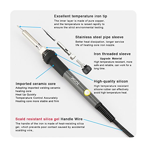 【Safety】XOOL electric soldering iron use high quality heat-resistant material, which make working more safe and reliable. The plug adopts international standard is effective in anti- creep, short-circuit proof and anti-static to keep user safe.