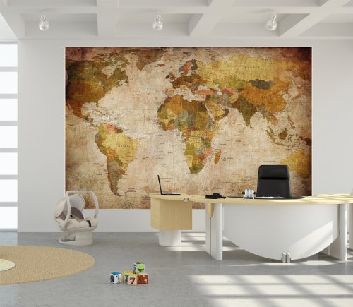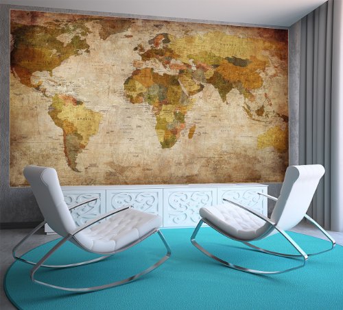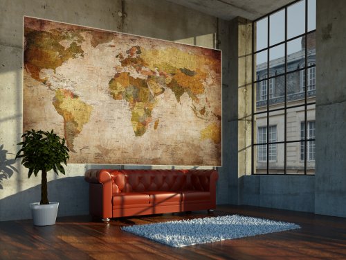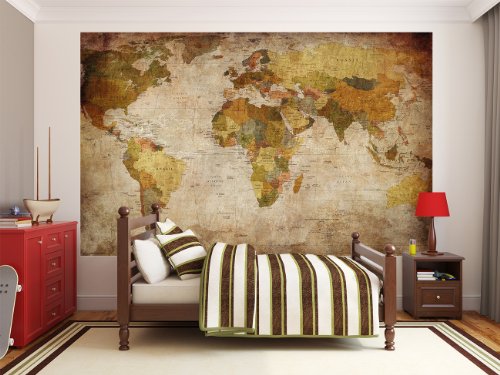 - Title : World Map Photo Wallpaper - Vintage Retro Motif - Xxl World Map Mural - Wall Decoration