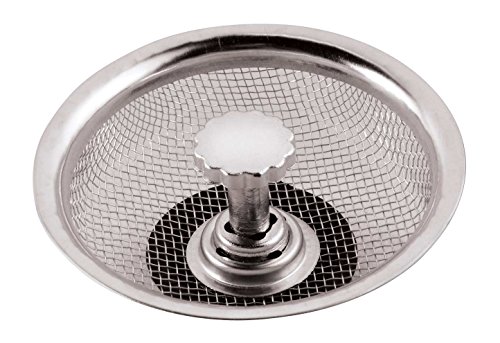 Studio : WalterDrake Publisher : WalterDrake Product Description Mesh drain cover is designed better with a built-in stopper. Now, nothing passes through the kitchen or bathroom sink to clog drainpipes. Stainless steel mesh kitchen drain stopper is on guard full time... when sink is full for washing or empty.Measures 3 1/4" diameter, rim to rim. 0