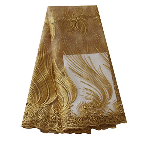 pqdaysun African Lace Fabric Nigerian French Lace Net Fabric Embroidered Fabric for wedding Party F50721 (gold)
