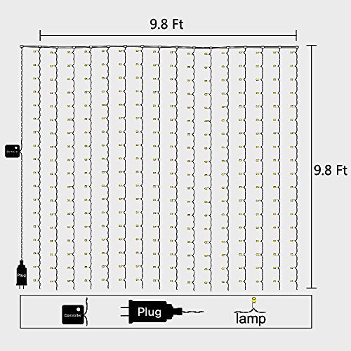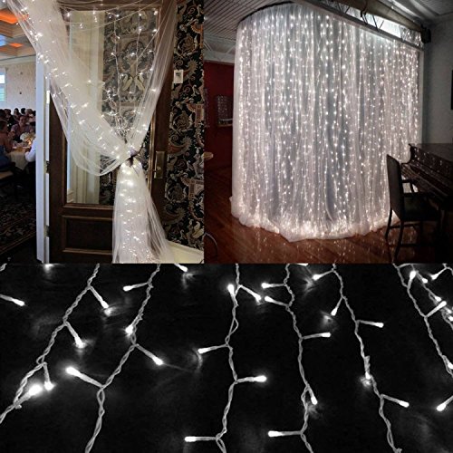 String lights Curtain, 300 LED Icicle Wall Lights, Fairy Indoor Starry Lights 8 Mode For Wedding, Bedroom, Christmas, Holiday, Home decoration, UL Certification(Warm white) (cold white) (cold white)
