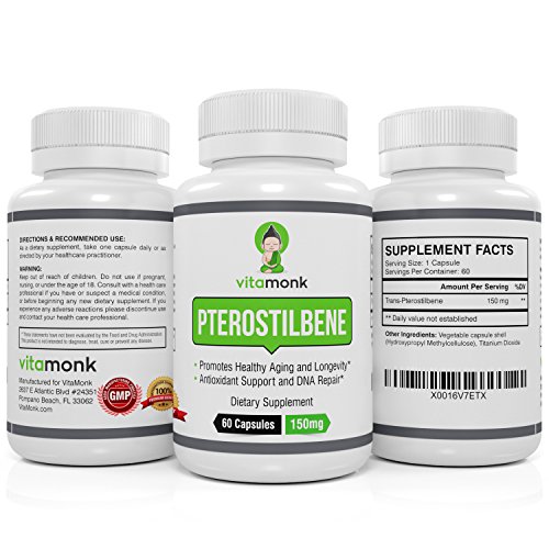 -. Title : VitaMonk™ Pterostilbene 150mg Capsules - THE BEST VALUE - 60 Servings - Promotes Healthy Aging and Longevity - Vegetable Capsules - Better than Resveratrol