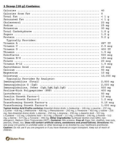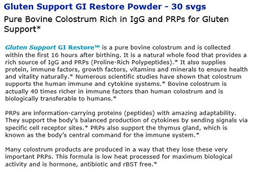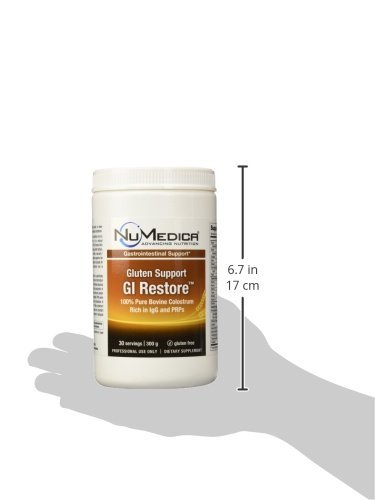 -. Binding : Health and Beauty -. Brand : NuMedica -. EAN : 0812527012219 -. Feature : Pure bovine colostrum rich in IgG and PRPs for gluten support / Supplies protein, immune factors, growth factors, vitamins and minerals to ensure health and vitality naturally / Colostrum supports the human immune and cytokine systems / 40 times richer in immune factors than human colostrum and is biologically transferable to humans / Low heat processed for maximum biological activity and is hormone, antibiotic and rBST free -. IsAdultProduct : 0 -. Label : NuMedica -. Manufacturer : NuMedica -. Model : 812527012219 -. MPN : NM221 -. NumberOfItems : 1 -. PackageQuantity : 1 -. PartNumber : NM221 -. ProductGroup : Health and Beauty -. ProductTypeName : HEALTH_PERSONAL_CARE -. Publisher : NuMedica -. Studio : NuMedica -. Title : Numedica - Gluten Support GI Restore 300 Grams -. UPC : 812527012219
