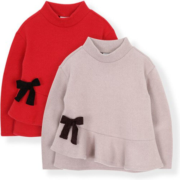 보들부들한 기모감의 스판성좋은 티셔츠예요.밑단의 사서 플레어 단과 리본으로 걸리쉬한 포인트를 주었답니다.스키니 핏 팬츠와 코디하기 좋은 아이템이에요.