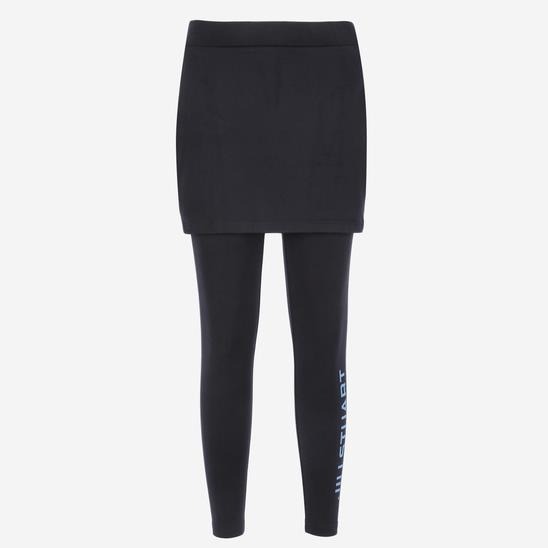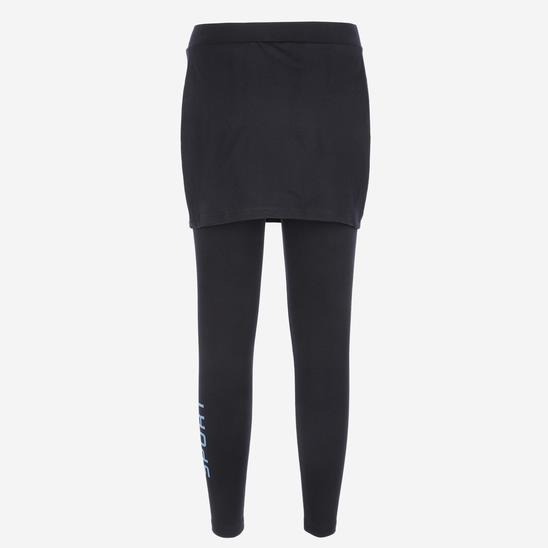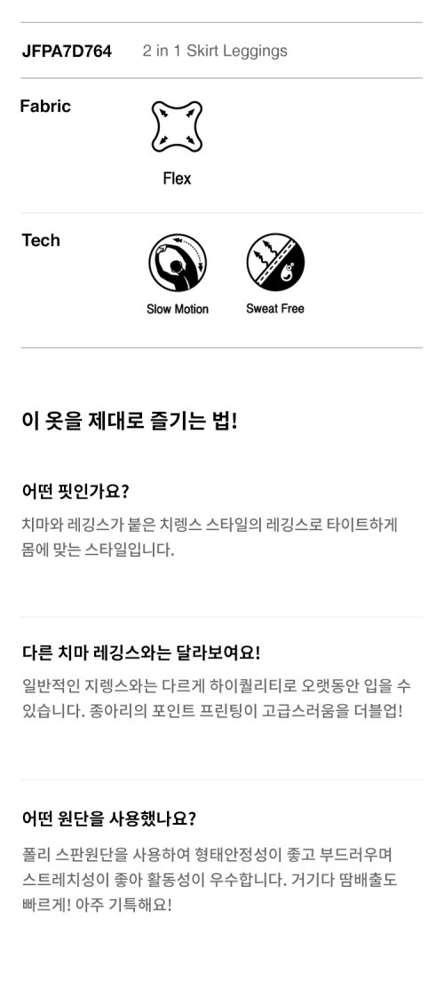 치마와 레이스가 붙은 치렝스 스타일로 상의와 매치하기 용이하며 밑단 로고 프린트로 포인트를 준 레깅스입니다.폴리 스판 원단을 사용하여 형태 안전성이 좋고 부드러우며 신축성이 우수하여 활동감이 편안합니다.