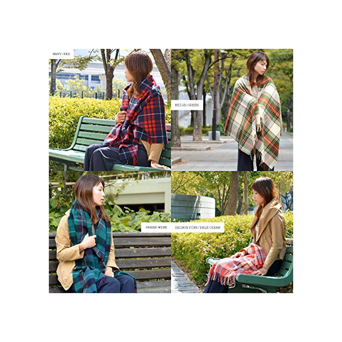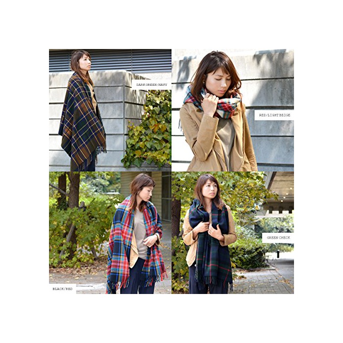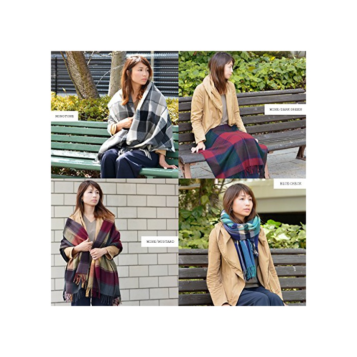 (상품)Goods 부드럽게 바탕이 두꺼운 것 대형 사이즈 감아 걸쳐 입어 어레인지 자재 따스한기 모BIG체크 스톨 네이비/레드