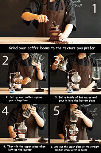 MAKES GOOD QUANTITY OF COFFEE - This syphon coffee maker provides good quantity of 5 cups serve of delicous coffee. Make your coffee in style with a nice amount of serves to your guests or families. As well as having this syphon coffee maker would be an eye catcher for your guests, also an interesting project to brew yourself a tasty coffee at home.