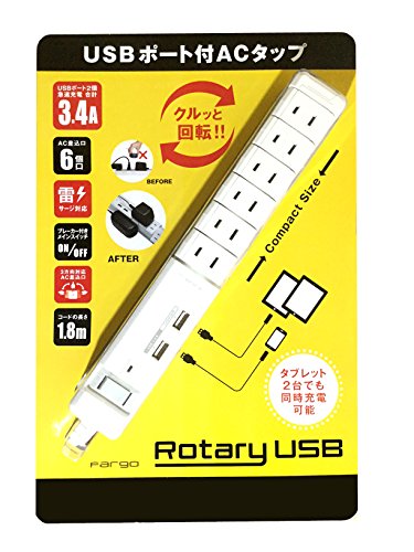 -. Title:파고 New 3.4A 2포트 USB급전 기능이 회전식 6개 입 OA탭 화이트 PT601BK USB충전 포트부 AC탭 연장 코드 Fargo ROTARY USB TAP