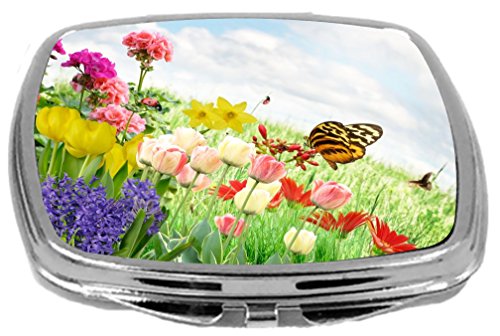 Rikki Knight Orange Butterfly Resting on Spring Colorful Flowers in Field Design Compact Mirror, 17 Ounce