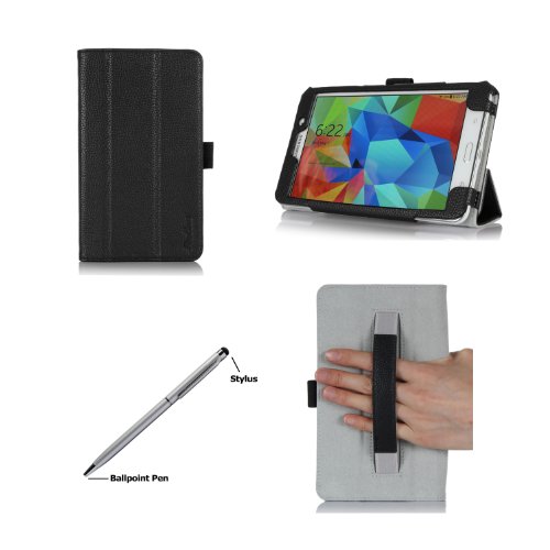 PROCASE FOLIO CASE WITH STAND FOR SAMSUNG GALAXY TAB 4 7.0 TABLET 2014 ( 7 INCH TAB 4, SM-T230 / T231 / T235), WITH HAND STRAP, BONUS STYLUS PEN INCLUDED