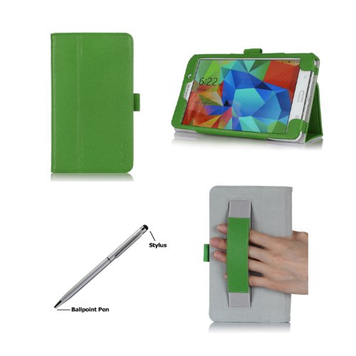 ProCase Folio Case with Stand for Samsung Galaxy Tab 4 7.0 Tablet 2014 ( 7 inch Tab 4, SM-T230 / T231 / T235), with Hand Strap, bonus stylus pen included (Green)
