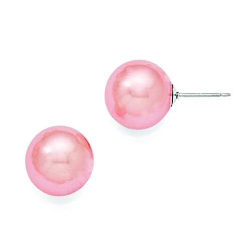 ICECARATS DESIGNER JEWELRY 925 STERLING SILVER MAJESTIK 13MM ROUND PINK SHELL BEAD STUD BALL BUTTON STUD EARRINGS