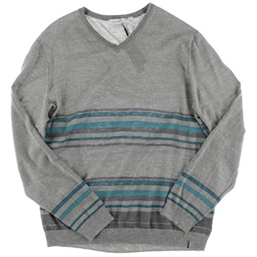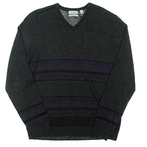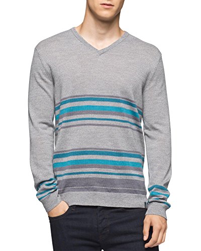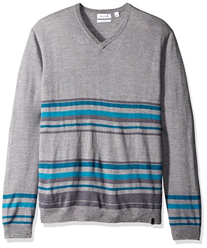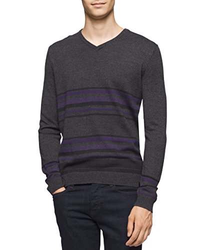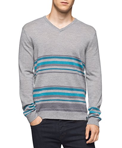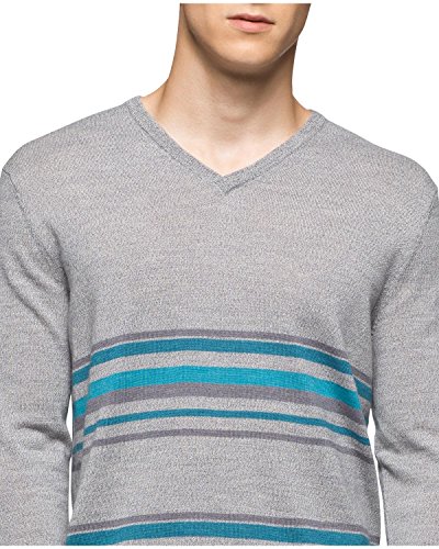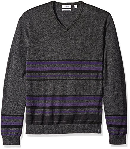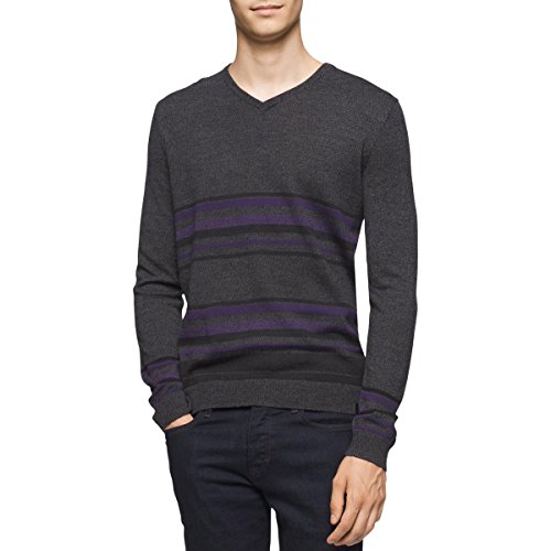 Calvin Klein Men's Merino Striped Color Block V-Neck Sweater