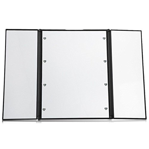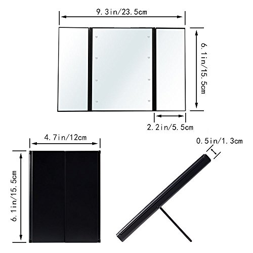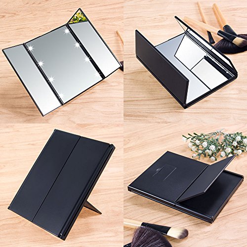 ECTECH 3-Fold Makeup Mirror with 8 LED Lights - Travel Compact Vanity Mirror (Black)