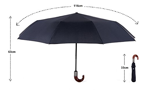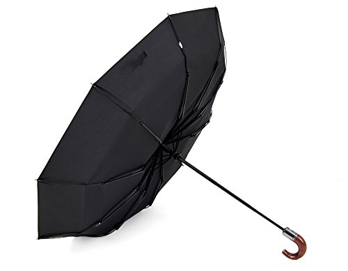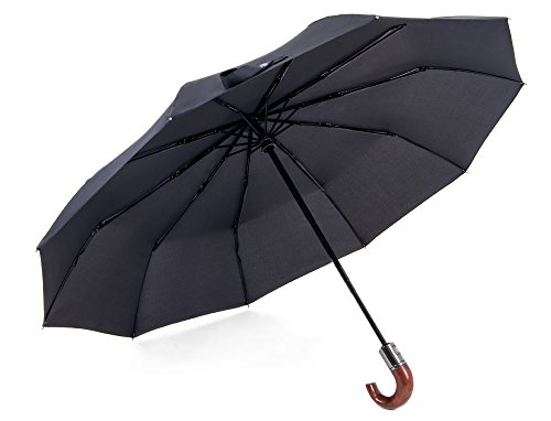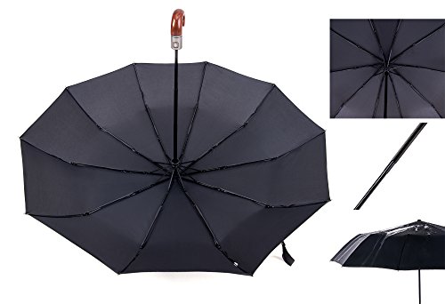 -. Title : Fully Automatic 3 Folding 10Ribs Imitation Wood Crook Handle Compact Travel Umbrella For Mens UV Protection Strong Waterproof & Windproof (black)