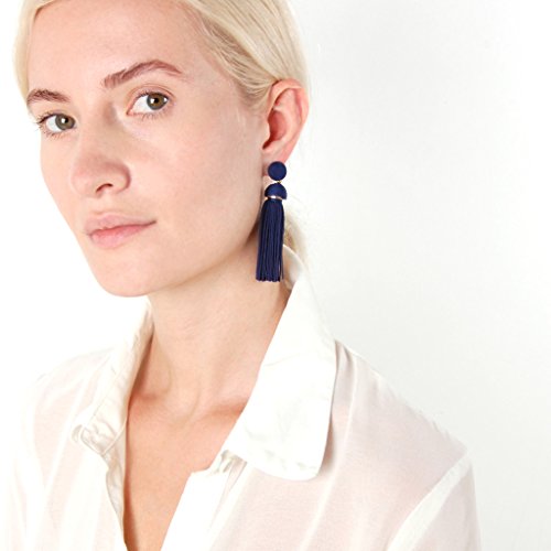 ELEGANT & STYLISH DESIGN - These bold dangle earrings feature strands of silky threads hanging from a circular post stud.