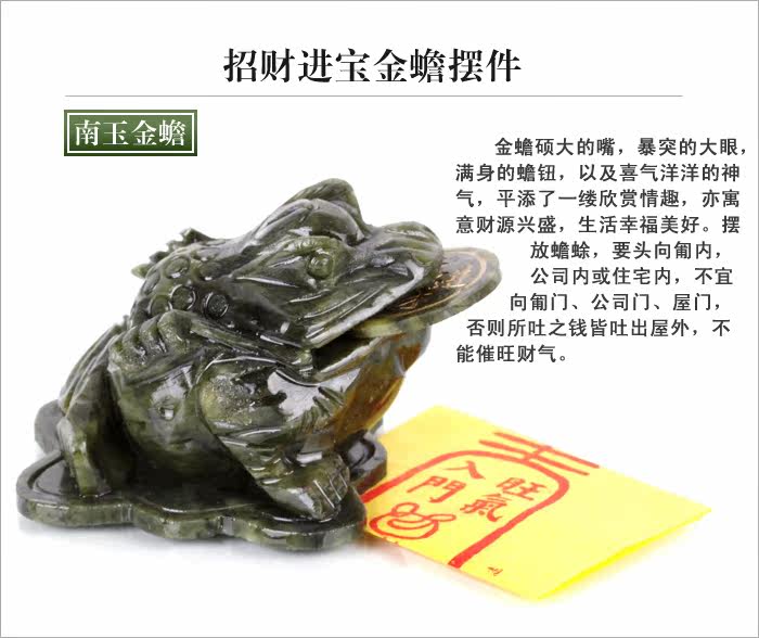 Three-legged toad mouth with reminders of fiscal and money with free money . Spit money with money for the room , empty timber is sucked out . Since ancient times with the " great man " to describe obtain Scholars , the legendary moon three-legged toad there , and then the moon also called moon . Today, the toad as an ornament into the household , he is not only decorative , but also evil, Lucky .