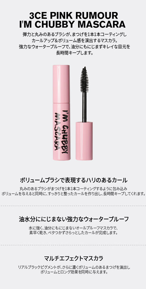 【South Korea direct delivery】 Korean cosmetics <3CE> PINK RUMOR I 'M CHUBBY MASCARA (10g)