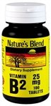-. Binding : Health and Beauty -. Brand : Nature's Blend -. EAN : 0079854200256 -. Feature : All Natures Blend Products are American Made / Preservative and Gluten Free / No Starch, Salt, Artificial Flavors or Colors, Wheat, Yeast or Corn Added! -. Label : National Vitamin Company -. Manufacturer : National Vitamin Company -. MPN : 55 -. PackageQuantity : 1 -. PartNumber : 55 -. ProductGroup : Health and Beauty -. ProductTypeName : HEALTH_PERSONAL_CARE -. Publisher : National Vitamin Company -. Studio : National Vitamin Company -. Title : Nature's Blend Vitamin B-2 25 mg 100 Tablets -. UPC : 079854200256