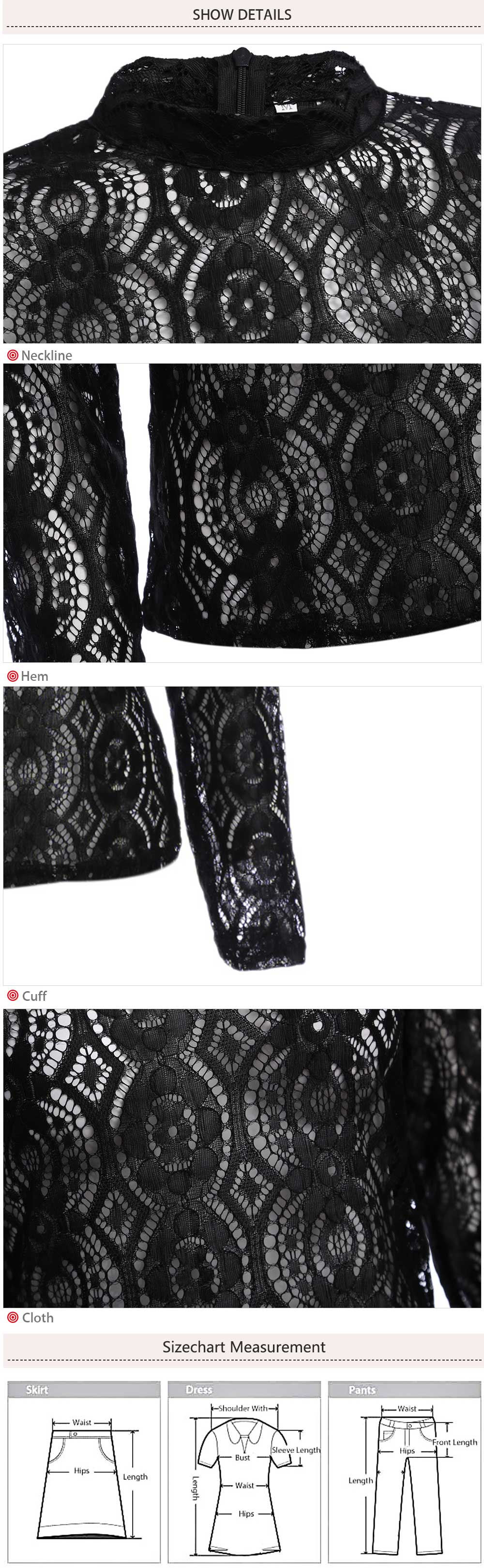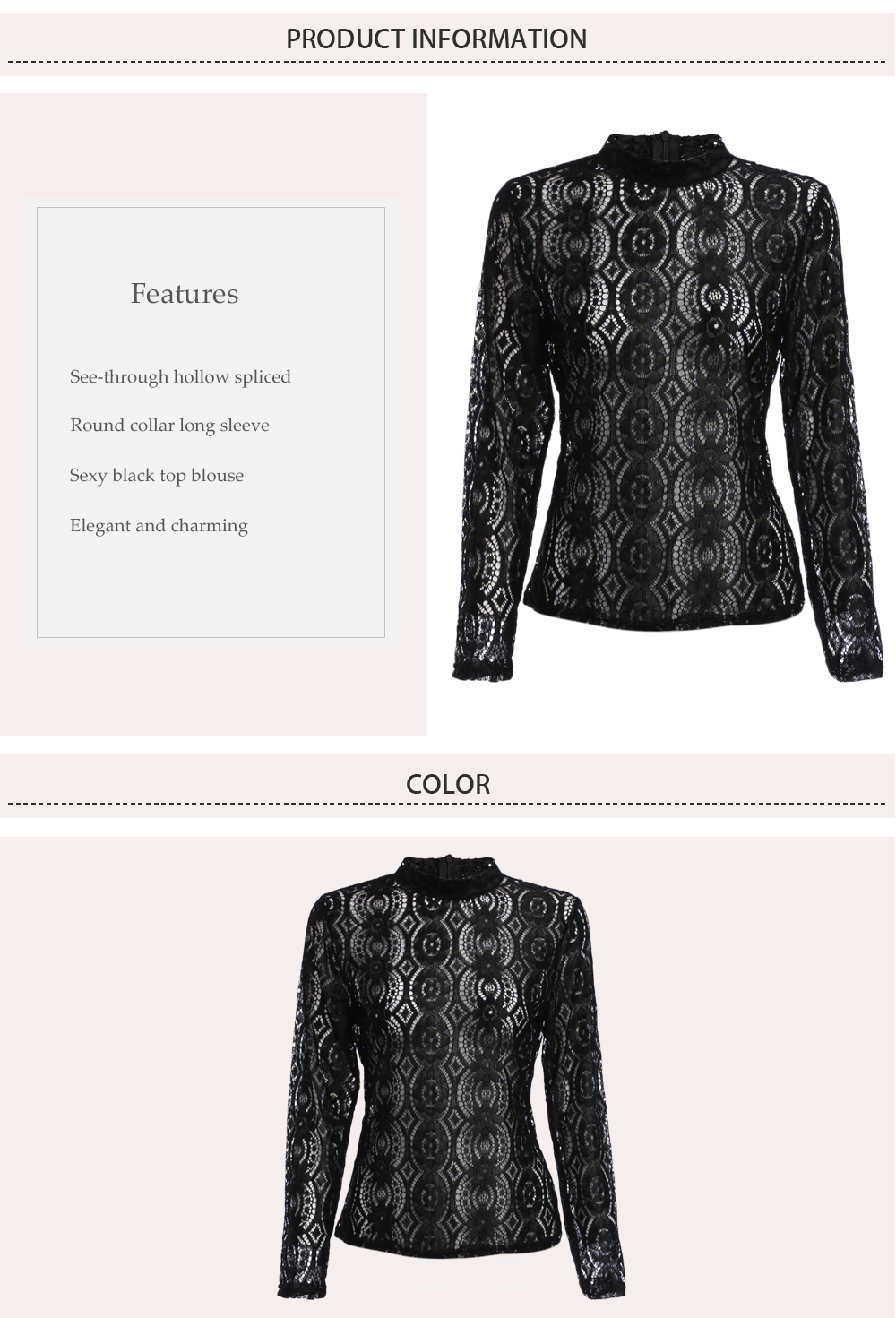 Stand Collar Long Sleeve See-through Hollow Spliced Top Blouse
